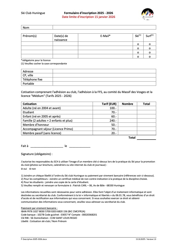AccueilUncategorized ??? Uncategorized ??? Inscription By Léo-Pol Kuster - 11/11/2025 28 0 FacebookTwitterPinterestWhatsApp FacebookTwitterPinterestWhatsApp Article précédentHistoire du Ski Club de HuningueArticle suivantProgramme Léo-Pol Kusterhttp://dev.skiclubhuningue.fr LAISSER UN COMMENTAIRE Annuler la réponse Commenter : S'il vous plaît entrez votre commentaire! Nom :* S'il vous plaît entrez votre nom ici Email :* Vous avez entré une adresse email incorrecte! Veuillez entrer votre adresse email ici Site : Enregistrer mon nom, email et site web dans ce navigateur pour la prochaine fois que je commenterai. FOLLOW US0FansJ'aime0SuiveursSuivre0AbonnésS'abonner LATEST POSTS Programme Histoire du Ski Club de Huningue Modalités d’inscription au ski-club Huningue Related Stories Uncategorized ??? Programme Présentation Histoire du Ski Club de Huningue Inscription Modalités d’inscription au ski-club Huningue